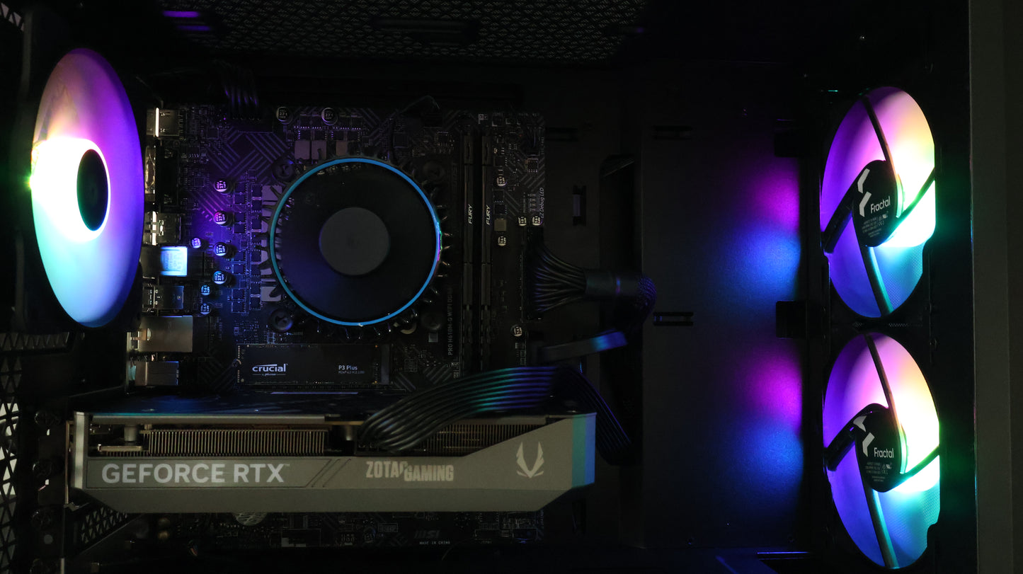 Le premier de notre gamme préconfigurée garantit que vous pourrez profiter d'une large gamme de jeux avec une excellente fidélité visuelle et des fréquences d'images fluides. Construit avec le processeur NVIDIA RTX 4060 , Intel Core i5 12400F et d'autres composants de haute qualité. Créer un excellent PC de jeu sans aucune exception de performances !