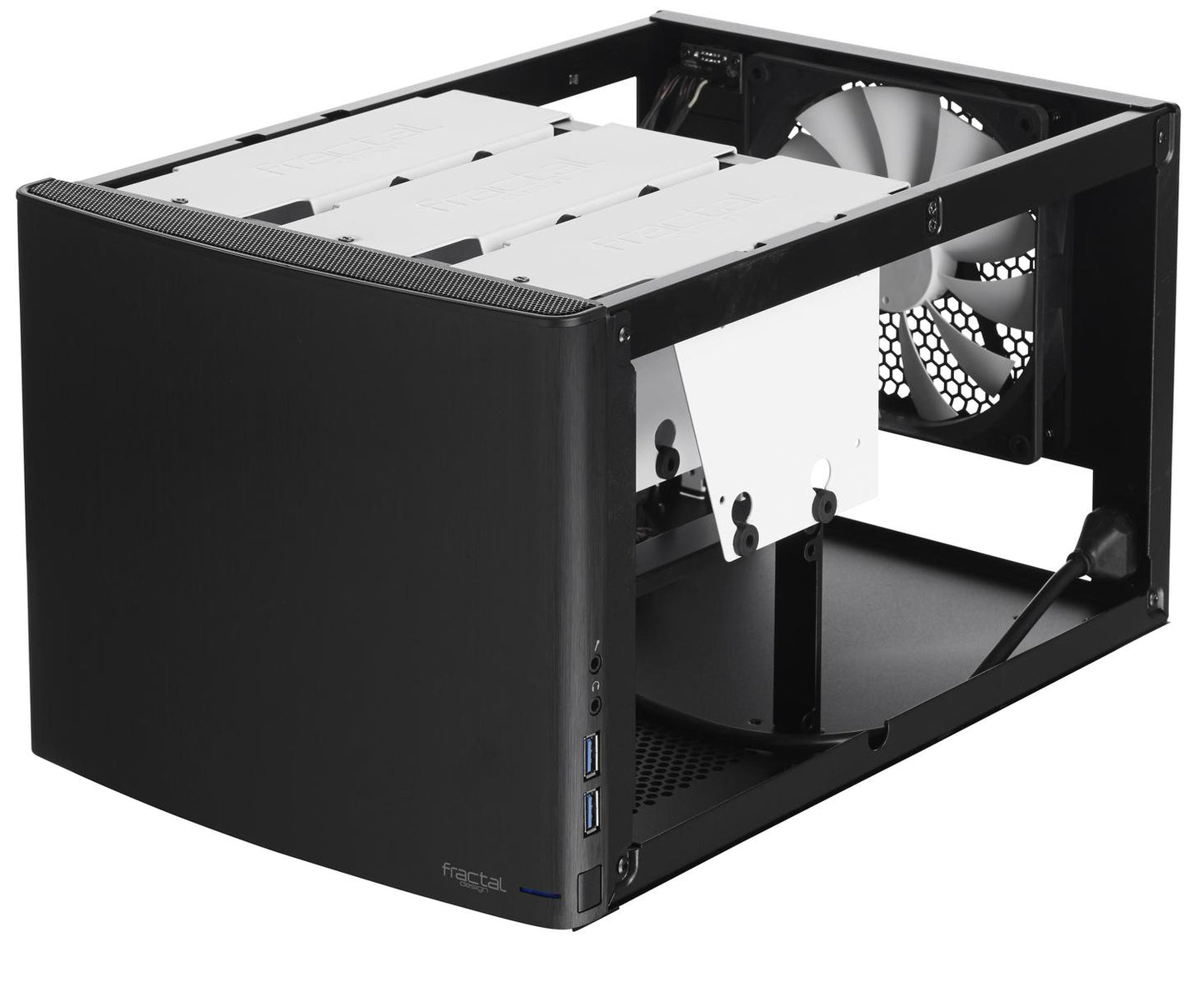 The Node 304 accommodates up to six hard drives. Unused mounting brackets can be removed in favor of long graphic cards, additional airflow or more space for organizing cables. Additionally, it is equipped with three hydraulic bearing fans, easy-to-clean air filters in all intakes and two front USB 3.0 ports.