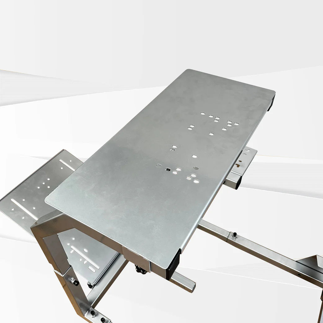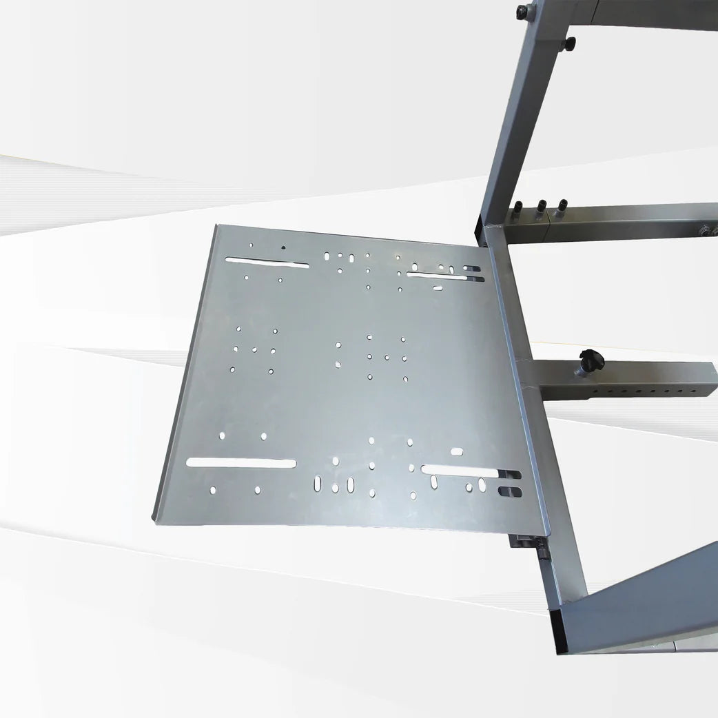 The pre-drilled mount is compatible with all major gaming equipment of wheels, pedals and shifters including Logitech, Thrustmaster, Fanatec and more.