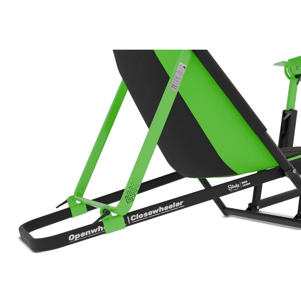 Introducing the Special Edition GTR Simulator GTA Compact V2 Stake F1 Team KICK Sauber Foldable Racing Simulator an Official Licensed Product of Sauber Motorsport AG. This groundbreaking simulator features a patented design, perfect for both open-wheel and closed-wheel racing enthusiasts. Enjoy customizable cockpit adjustments and a quick-release system for effortless storage. Experience unparalleled comfort and adaptability with an adjustable backrest and a specially designed sling seat that combines strength and breathability.
