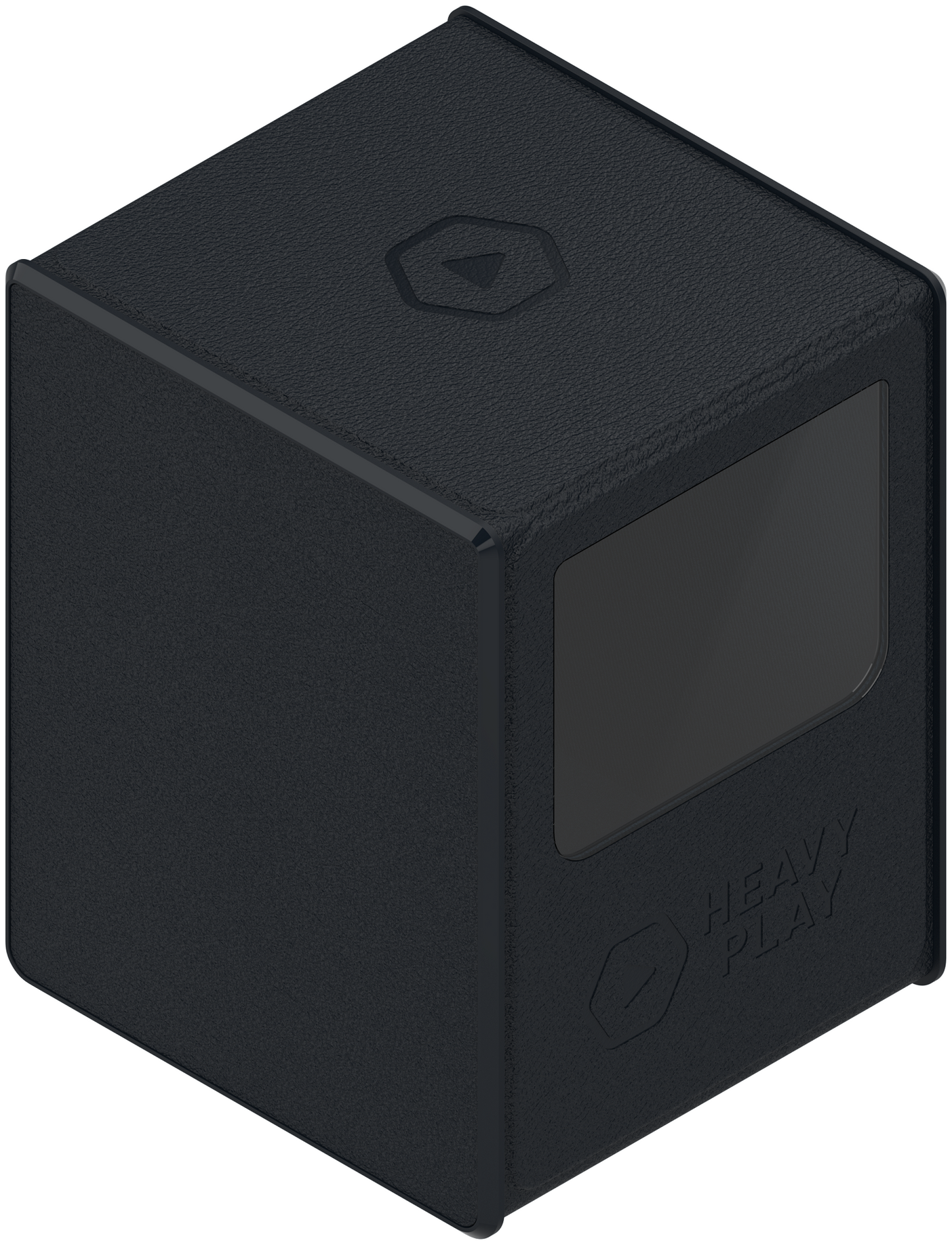 The ultimate flip deck box. Clear front window to showcase your favorite card and quickly find the deck you're looking for. Unique bottom closure magnets provide superior closure strength. Durable molded polycarbonate chassis. Welded vegan leather cover. Premium microfiber interior.