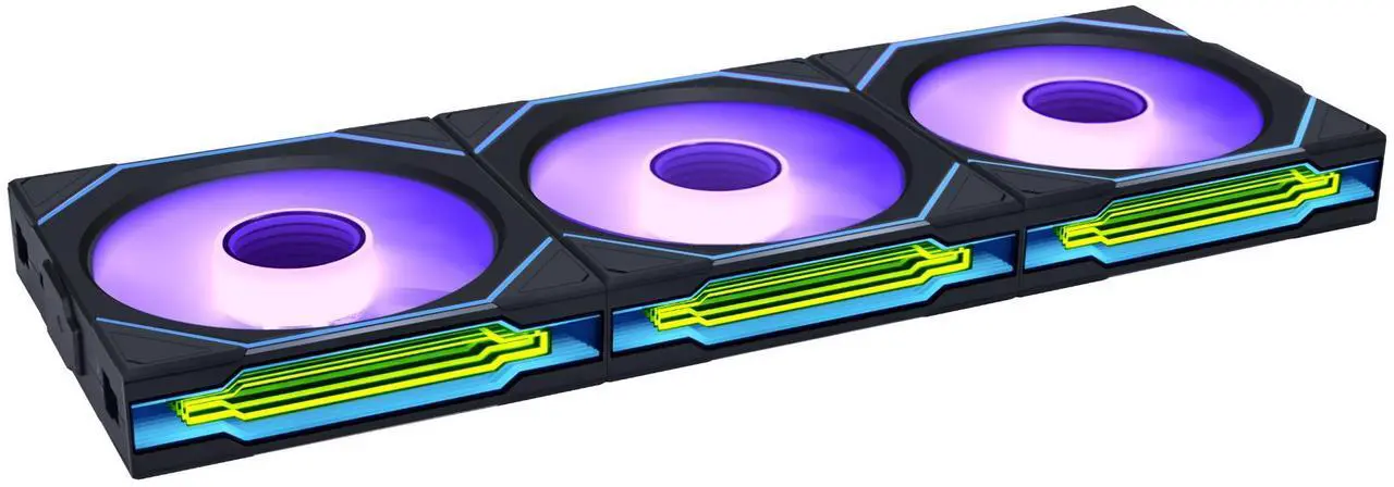 •Cableless RGB and PWM sync—one receiver per fan cluster, no controller wiring needed