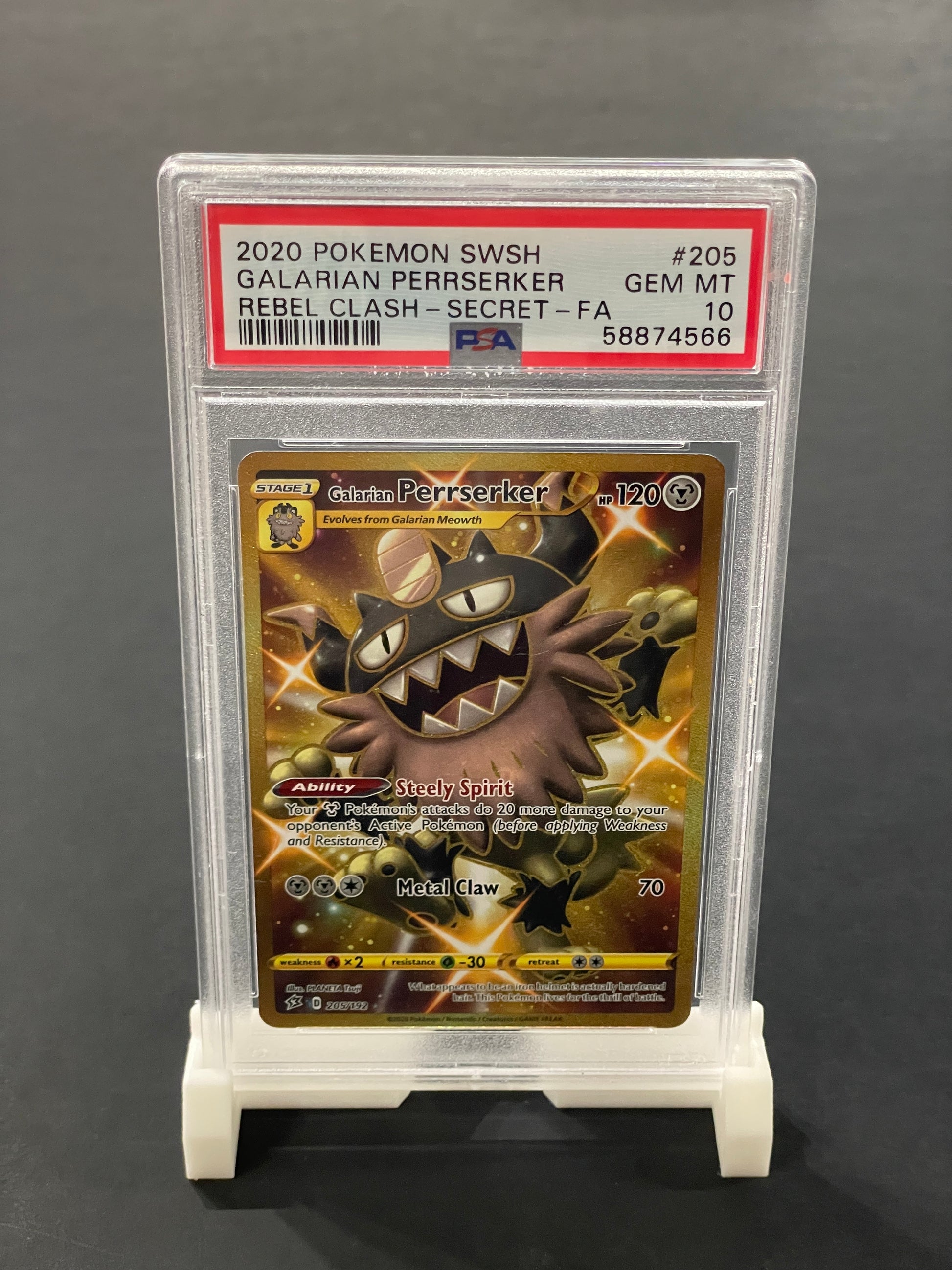 Perrserker 205/192 Rebel Clash Holo Foil PSA Gem Mint 10 - Pokémon Card
