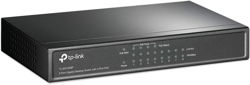 TL-SG1008P is easy to install and use. It requires no configuration and installation. With desktop design, outstanding performance and quality, the TP-LINK TL-SG1008P 8-Port Gigabit Desktop Switch with 4-Port PoE is a great selection for expanding your home or office network.