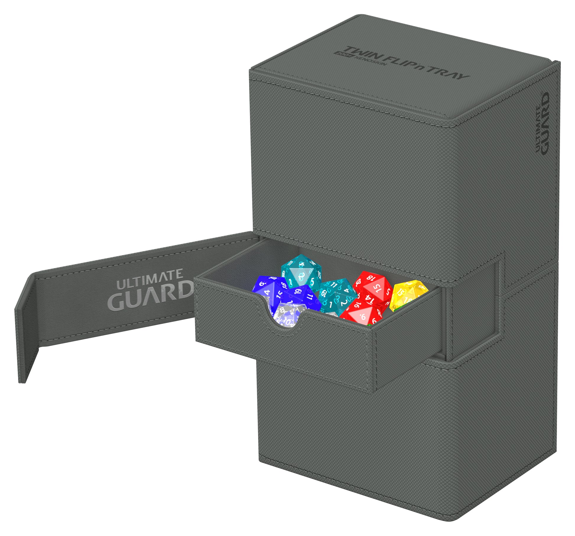 One box, two card decks, and additional accessory tray: Our Twin Flip’n’Tray 200+ offers all the features a great deck box needs. Doubling the size of our classic Flip’n’Tray 100+, this box is the big sibling everyone is looking for. The Twin Flip’n’Tray 200+ can hold 200 doublesleeved or 240 single-sleeved standard sized cards*. Modular designed like most Ultimate Guard Products, you can replace the deck trays with our Boulder 100+ for additional protection of your cards.